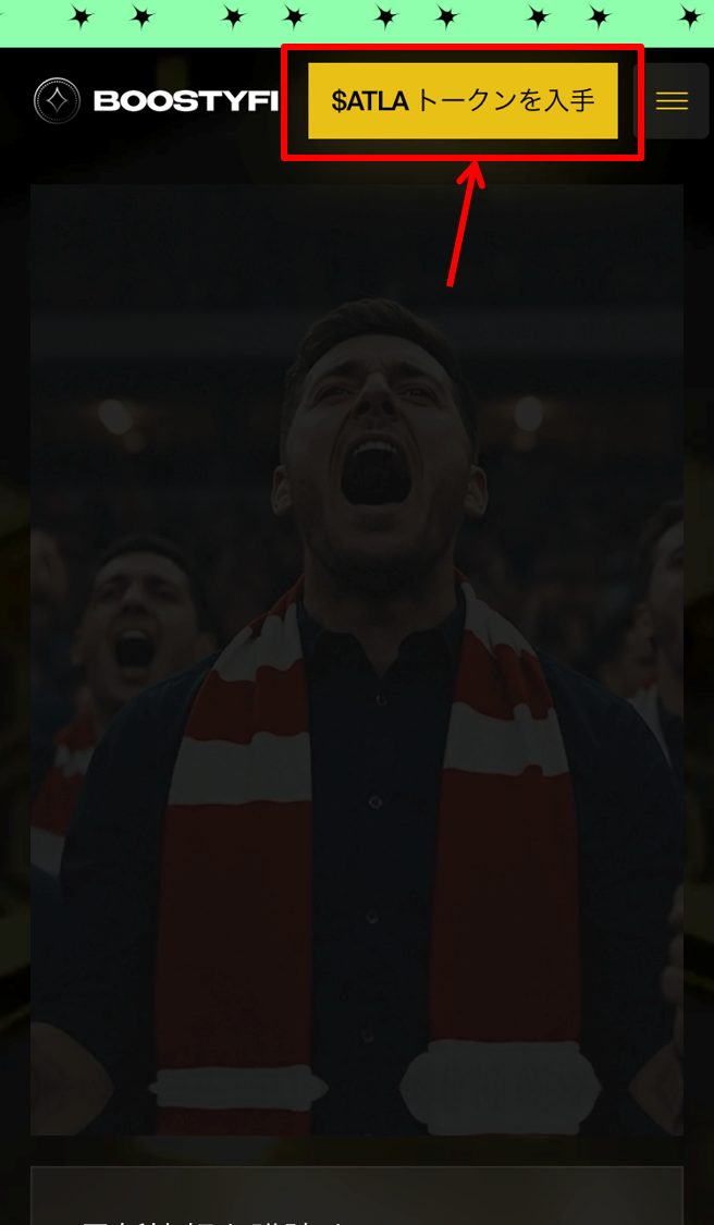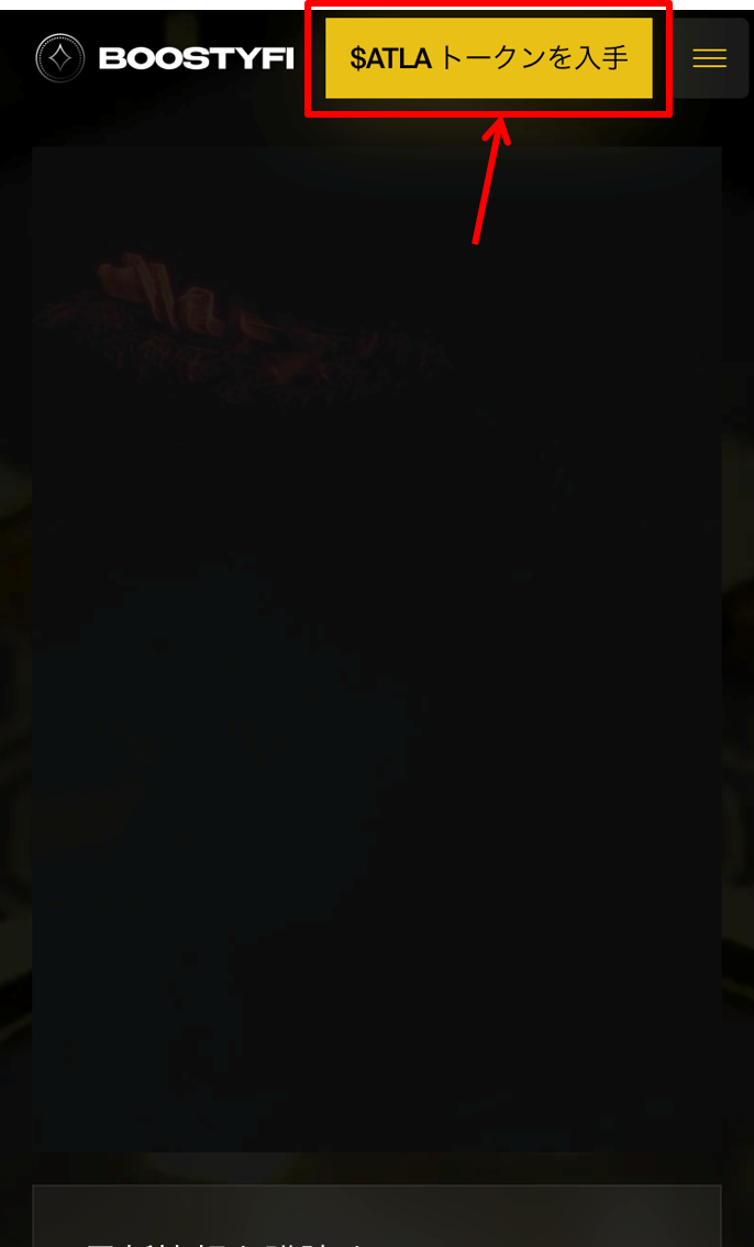 まず下のリンクをタップしてBoostyfiの公式サイトにアクセスします。