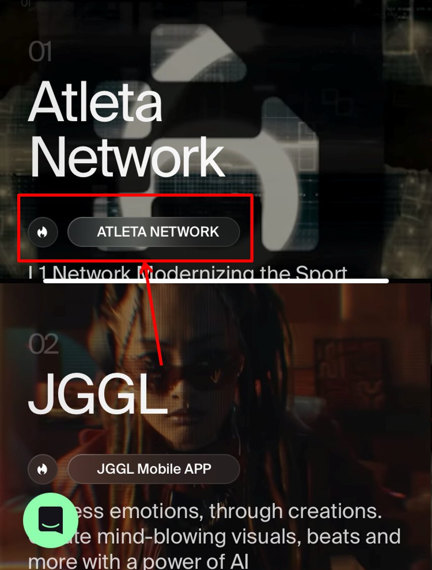 サイトにアクセスしたら「Atleta Network」をタップします。