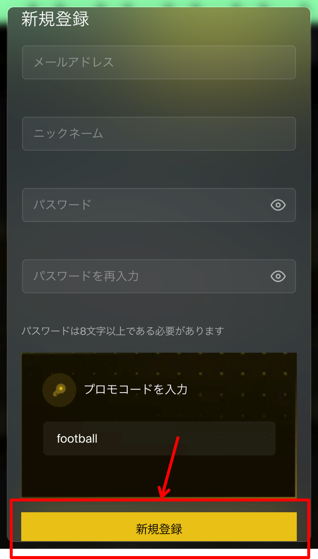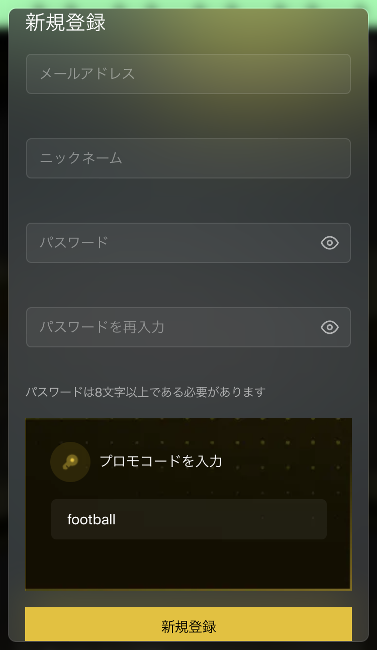 また登録時に使えるプロモコード『football』の使い方も合わせてご紹介します。