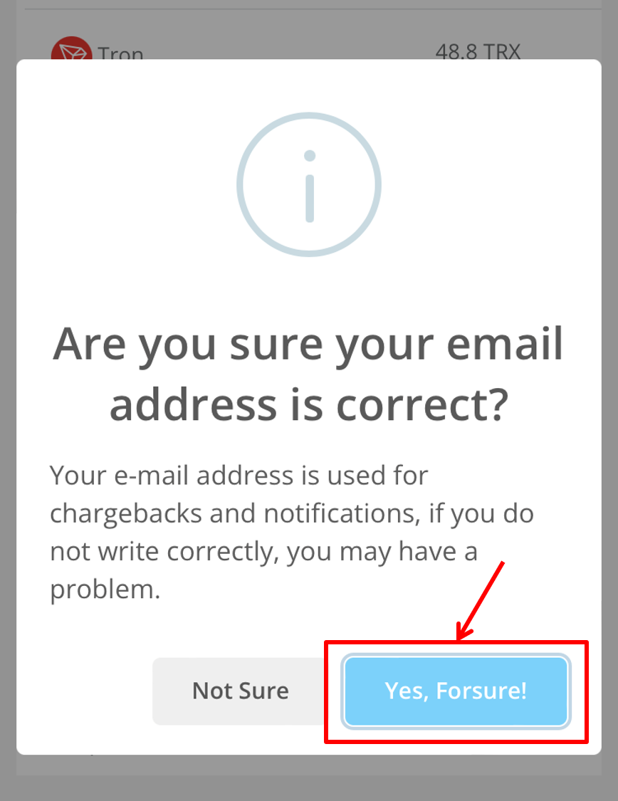通貨を選ぶと「Pay with [選んだ通貨名]」というボタンが表示されるのでそれをタップします。